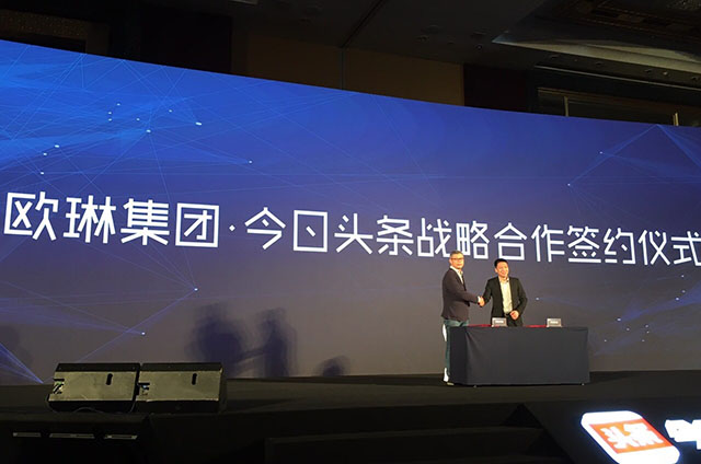 會上,歐琳集團與今日頭條戰(zhàn)略合作簽約儀式正式啟動。在互聯(lián)網(wǎng)發(fā)展的新形勢下,歐琳專注智能廚房里的溫情生活,用工匠精神的極致演繹生活的品質(zhì)。歐琳集團和今日頭條的合作一定會碰撞出更精彩的火花,開啟廚具行業(yè)“智”的飛躍。